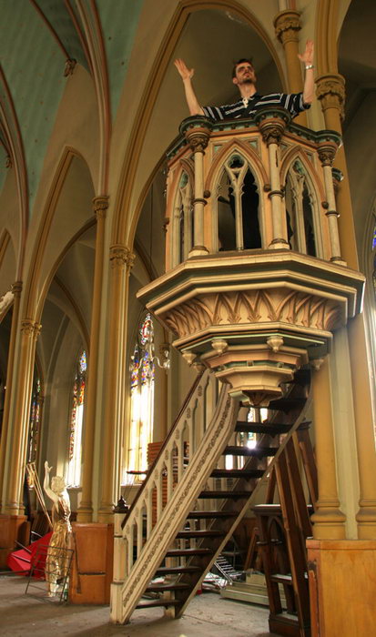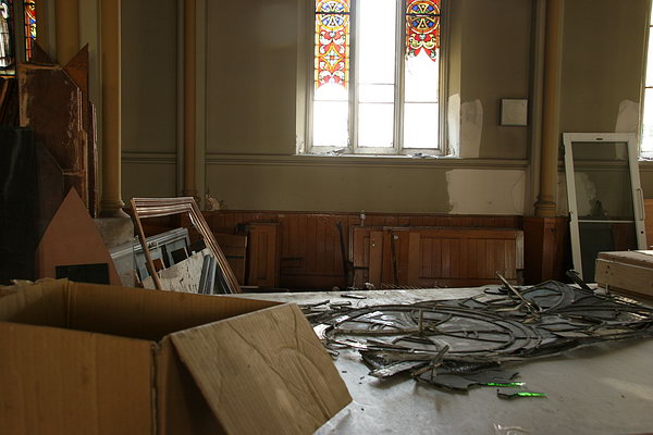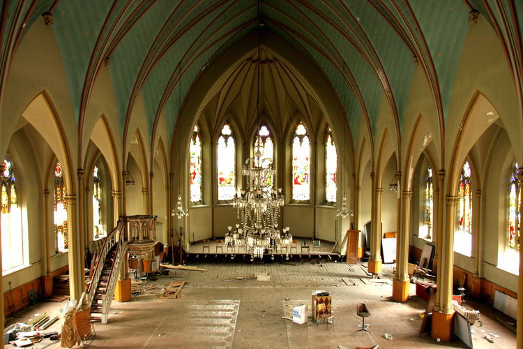 En entrant, il y a des choses étranges qui attirent mon attention. D'abord, le plafond est à une bon 15'. Il semble étrangement haut pour une aussi vieille église. Je ne m'attendais pas à un sous-sol qui avait un potentiel de salle à Bingo.