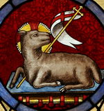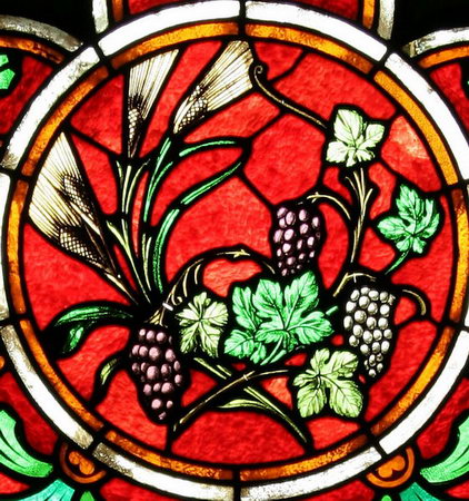 Vitrail maladroitement brisé, en partiel démontage (lire brisé). La boîte est pleine de morceaux.