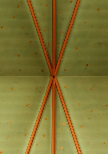 Le plafond de l'église cache-t-il comme celui de l'église de Lachute une couche d'amiante sous ses paisibles étoiles ? Il ne nous a pas été possible de se rendre assez proche pour vérifier.
