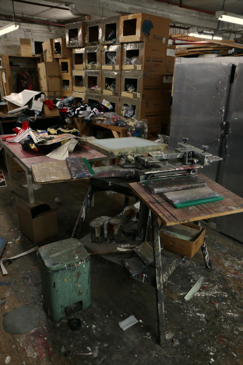 Plus loin, le carrousel de sérigraphie et les soies. À l’arrière, un