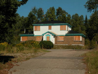 OK! c'est le temps d'y aller! par un après-midi sombre et nuageux de décembre alors que le soleil est déjà sur sa descente... il n'est que 14h30 je décide de partir à la recherche du sanatorium perdu. Une fois à Ste-Agathe, il ne faut que 5 minutes de de route pour rapidement trouver la place. Comme nous approchons un sentiment d'assurance se fait sentir, ça y est c'est là, je suis sûr, sûr de quoi? je ne sais même pas de quoi l'hôpital est supposé avoir l'air. Mais mon instinct me dit que ça l'air abandonné et que c'est le bon endroit.