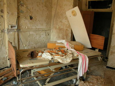 Visiter Mont Sinaï donne un étrange sentiment; nous avons l'impression que les patients et le personnel à subitement quitté les lieux en prenant avec lui tout ce que ses deux bras pouvaient contenir. Un peu comme s'il y eut une évacuation d'urgence et que les gens n'étaient jamais revenus. Lits, draps, rideaux, civières, fours, poêle, seringues, livres, lampes, un nombre incalculable de chaises machines à café, etc. tant de choses laissées derrière, tant de choses qui témoignent de la vie passée du bâtiment.