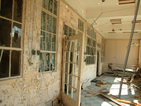 Faute de projets concrets et de personnes prêtent à investir, à l'exception d'un contracteur en démolition aillant justement une décharge pour déchets secs... parfait pour domper un vieil hôpital dans son trou et par le fait même acheter un terrain, effacer le bâtiment inutile du paysage et faire la $ en même temps.... un projet qui se paie de lui même! Sauf qu'il y avait de l'amiante sous plusieurs formes: tuiles de plancher, plâtre des murs d'un étage, tuyauterie et stuc extérieurs. Un petit chantier d'enlèvement de plâtre pour la conscience du chargé de projet puis le bâtiment est jeté au sol, émietté et répandu à la grandeur du lot.