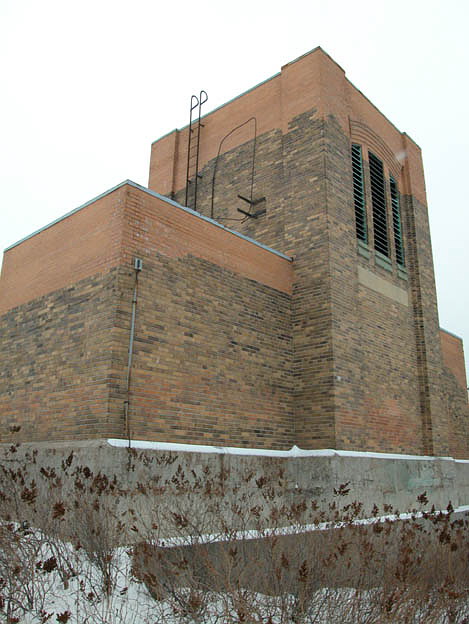 La tour sud est presque identique à sa sœur la tour nord. Elle comporte les mêmes éléments extérieurs et sa brique a elle aussi été partiellement réparée. Par contre, elle ne semble pas à l'abandon, elle est bien verrouillée et une plaque sur la porte indique l'usage de l'endroit : une station de pompage.