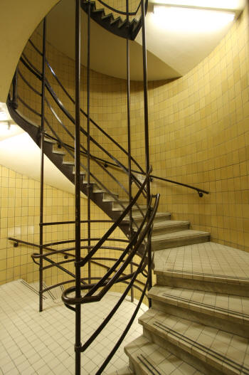 étages du pavillon Roger-Gaudry, un escalier en tire-bouchon de 123’ de haut