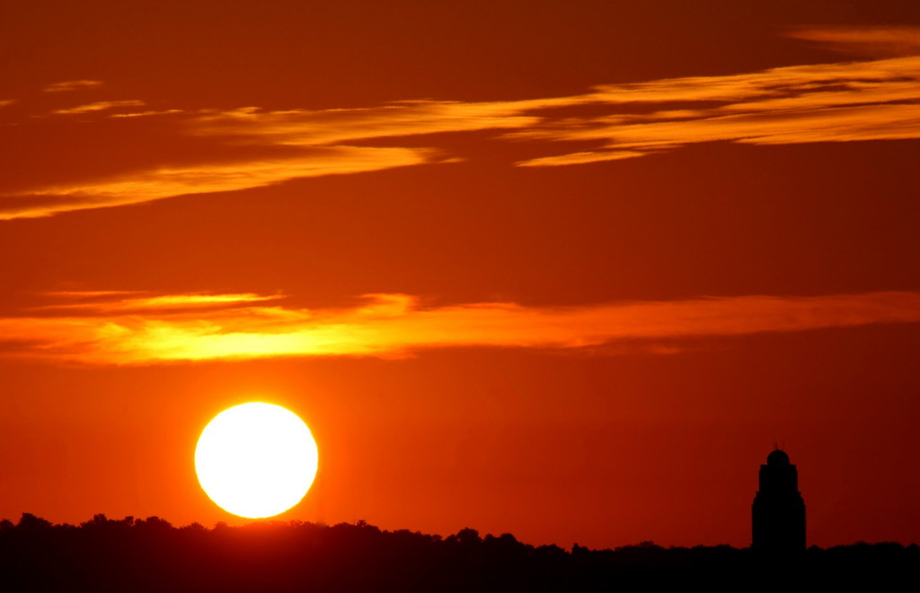 Le ciel est sombre et sans détail, mis à part le pavillon