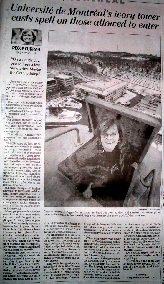 J’ai écrit à Peggy Curran du journal The Gazette suite à mes visites en haut